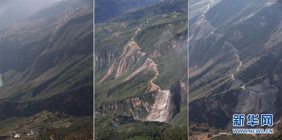 阿布洛哈村通村公路的修建過程(這是一張拼版照片,從左至右依次拍攝于2018年11月15日、2019年7月18日、2019年12月27日)。3.8公里的通村公路起于布拖縣拉果鄉(xiāng)偉木村,止于烏依鄉(xiāng)阿布洛哈村村委會(huì)。新華社記者江宏景攝