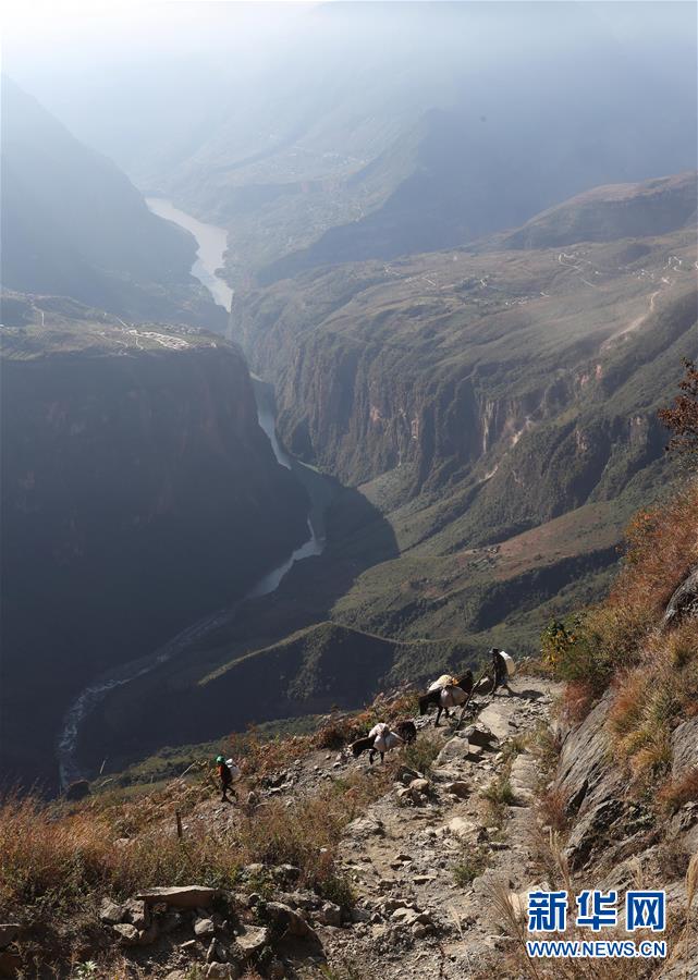 阿布洛哈村村民牽著馬馱運(yùn)物資到村子里(2018年11月17日攝)。新華社記者江宏景攝