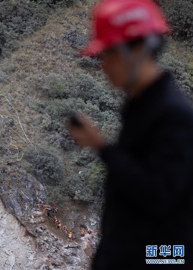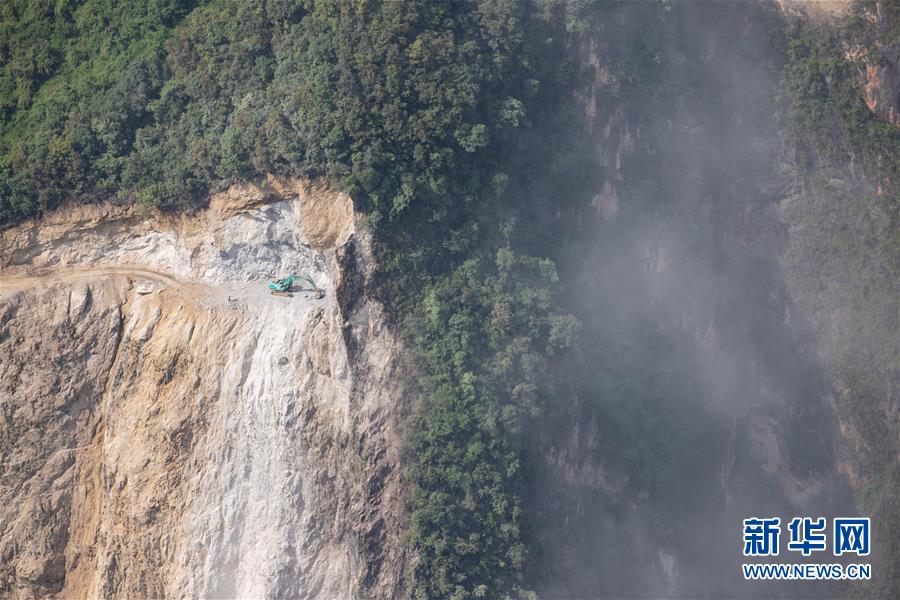 阿布洛哈村通村公路施工遇到陡崖夾溝地勢(shì),項(xiàng)目進(jìn)程艱難緩慢,四川路橋施工隊(duì)伍開始在峽谷兩邊分頭推進(jìn)(2019年11月20日攝)。新華社記者江宏景攝