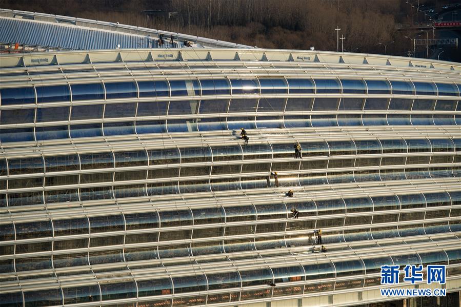 12月31日,施工人員在實(shí)現(xiàn)封頂封圍的國家速滑館施工現(xiàn)場(chǎng)工作。新華社記者鞠煥宗攝