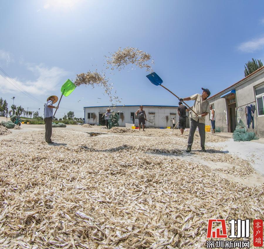 岸上,家家戶戶都在忙著晾曬剛捕撈上來的毛刀魚、小白魚和武昌魚。
