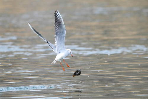 2019年3月17日,水鳥(niǎo)在山西省太原市汾河濕地公園覓食。新華社記者楊晨光攝