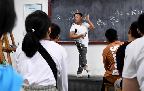 2019年9月9日,在位于西安市的陜西省城市經(jīng)濟(jì)學(xué)校,計(jì)算機(jī)平面設(shè)計(jì)專(zhuān)業(yè)的美術(shù)老師王旭陽(yáng)在給新生講授繪畫(huà)基礎(chǔ)知識(shí)。該校是西安唯一一所針對(duì)殘障人士設(shè)立的特殊教育中等職業(yè)學(xué)校。新華社記者劉瀟攝