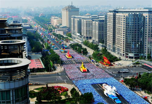 2019年10月1日,慶祝中華人民共和國(guó)成立70周年大會(huì)在北京天安門(mén)廣場(chǎng)隆重舉行。這是行進(jìn)中的群眾游行方陣。新華社記者魏培全攝