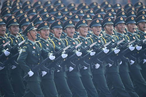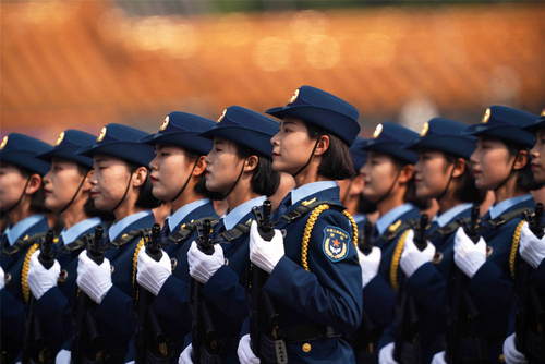 2019年10月1日,慶祝中華人民共和國(guó)成立70周年大會(huì)在北京天安門(mén)廣場(chǎng)隆重舉行。這是女兵方隊(duì)接受檢閱。新華社記者王毓國(guó)攝