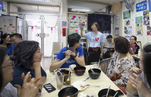 2019年10月10日,食客在李凱瑚位于香港九龍的茶餐廳里聚集,為她加油。51歲的李凱瑚是土生土長(zhǎng)的香港人,她多次參加撐警集會(huì),并在社交媒體上表態(tài)支持警察。遭到騷擾和恐嚇 但李凱瑚繼續(xù)勇敢支持警察,向市民發(fā)出號(hào)召,反對(duì)暴力。一些香港市民、內(nèi)地游客專(zhuān)程來(lái)到李凱瑚的茶餐廳,為她加油打氣,表達(dá)對(duì)香港的美好祝愿。新華社記者盧燁攝