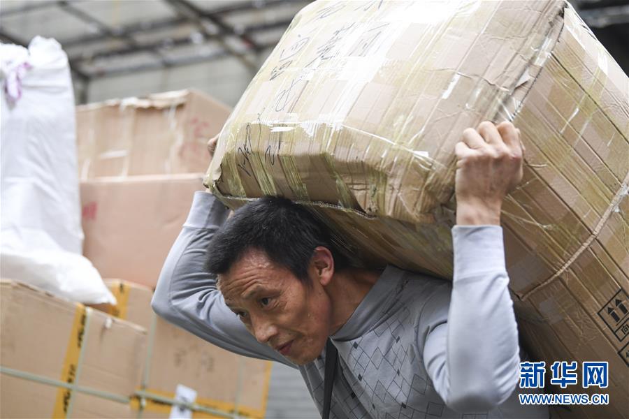 冉光輝在重慶朝天門搬運(yùn)貨物(1月5日攝)。新華社記者王全超攝