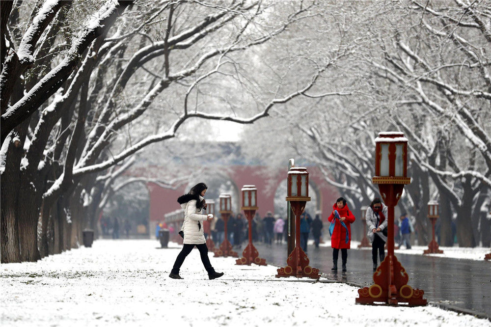 2019年11月30日,民眾在北京天壇公園內(nèi)賞雪。29日,北京迎來2019年冬季初雪。富田(攝影部)/中新社/視覺中國(guó)