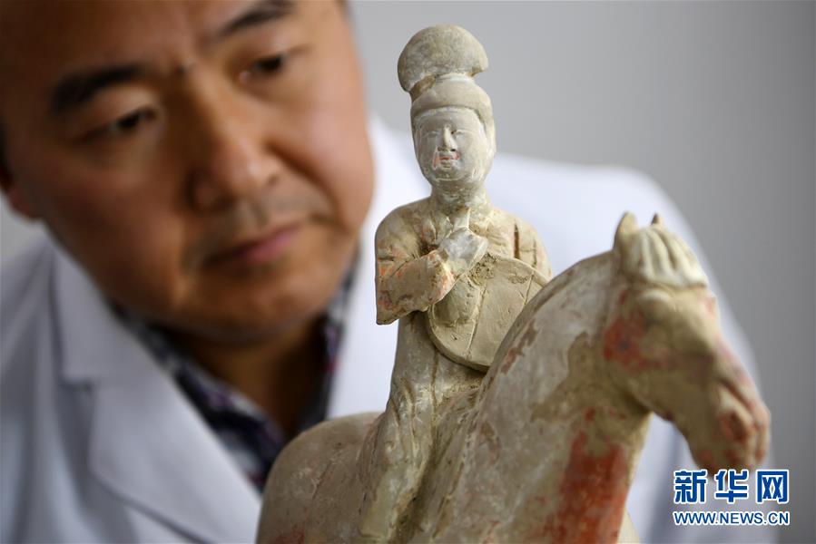 2019年12月27日,在天水市博物館文物保護修復中心陶、玉石器文物修復室,專業(yè)技術人員孟旭輝在觀察一件唐代彩繪陶俑的病害情況。 甘肅省天水市博物館文物保護修復中心有一支專業(yè)的文物修復隊伍,共有14名專業(yè)技術人員。從2012年正式成立以來,他們不僅承擔著對館藏和館外文物的修復工作,還參與了多次文化遺存的調查和搶救性發(fā)掘、古建筑彩畫保護、古墓葬搬遷復原等工作。一件件殘缺破損、滿身病害的文物經過他們的巧手修復,又重新煥發(fā)光彩,展示在公眾面前。 新華社記者 馬寧 攝