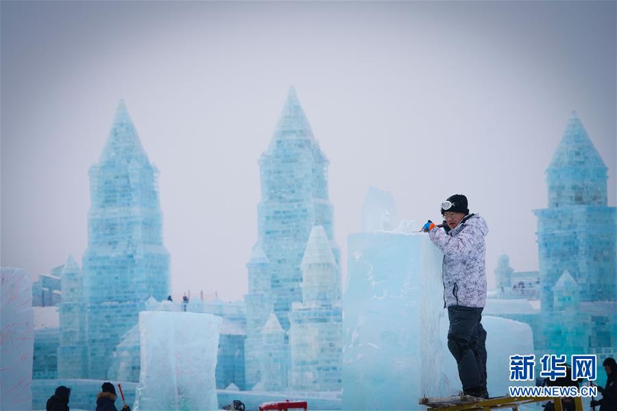 1月6日,參賽者在創(chuàng)作冰雕。新華社記者王松攝