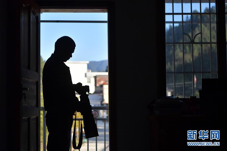 陳志高在保護站內查看近幾日拍攝的照片(1月8日攝)。