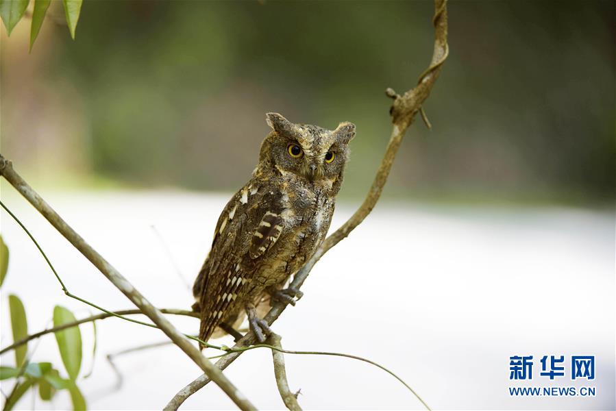 這是陳志高在保護區(qū)內(nèi)拍攝的紅角鸮(2017年3月27日攝)。新華社發(fā)(陳志高攝)