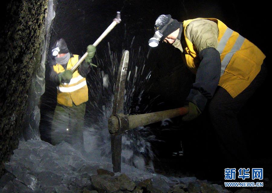 1月9日,在加格達奇工務(wù)段西羅奇嶺二號隧道,西羅奇維修工隊工作人員進行隧道除冰作業(yè)。新華社記者王毓國攝