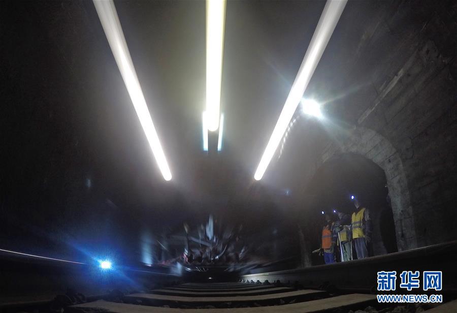 1月6日,在加格達奇工務(wù)段西羅奇嶺二號隧道,西羅奇維修工隊工作人員進行維修作業(yè)。新華社記者才揚攝