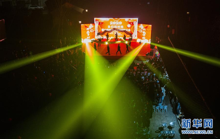1月14日,杭州市余杭區(qū)中泰街道中橋村的文化公園內(nèi)在進(jìn)行“我們的村晚”舞龍表演,吸引了大批當(dāng)?shù)匕傩沼^看(無人機(jī)照片)。臨近春節(jié),浙江省杭州市余杭區(qū)中泰街道各村社的文化禮堂紛紛上演“我們的村晚”。老百姓自編、自導(dǎo)、自演為主的“土味”聯(lián)歡會(huì)因接地氣、親情濃而深受當(dāng)?shù)匕傩盏南矏郏蔀楫?dāng)?shù)剜l(xiāng)村百姓的新年迎春“文化大餐”。近年來,中泰街道以文化振興助推鄉(xiāng)村振興。目前,中泰街道下屬各村陸續(xù)建成文化禮堂7個(gè)、社區(qū)文化家園2個(gè),努力培育和挖掘出一批鄉(xiāng)土文化人才及原創(chuàng)作品,2019年全年開展各類鄉(xiāng)村社區(qū)惠民文體活動(dòng)累計(jì)180余場次。新華社記者徐昱攝