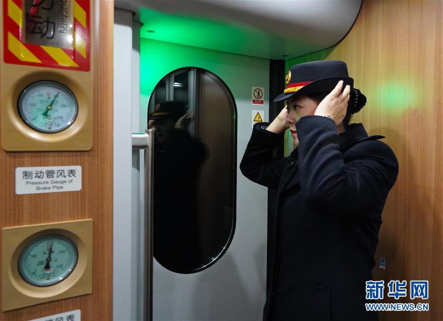 1月3日晚,車輛即將到達(dá)南昌西站,卞菁整理衣帽。新華社記者 張浩波 攝