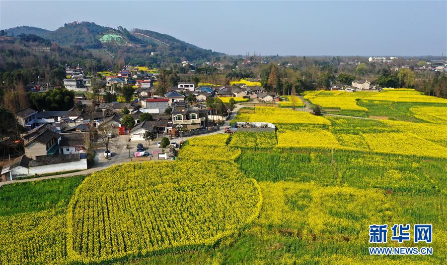 2月25日在四川省崇州市拍攝的油菜花田(無(wú)人機(jī)照片)。新華社記者王曦?cái)z