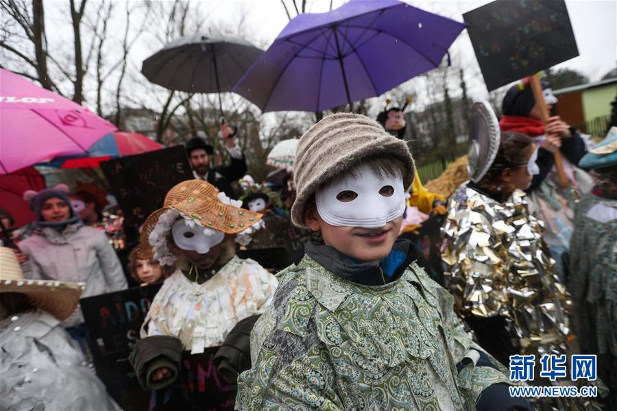 2月27日,兒童在比利時(shí)布魯塞爾參加狂歡節(jié)活動。 新華社記者鄭煥松攝