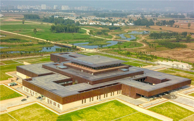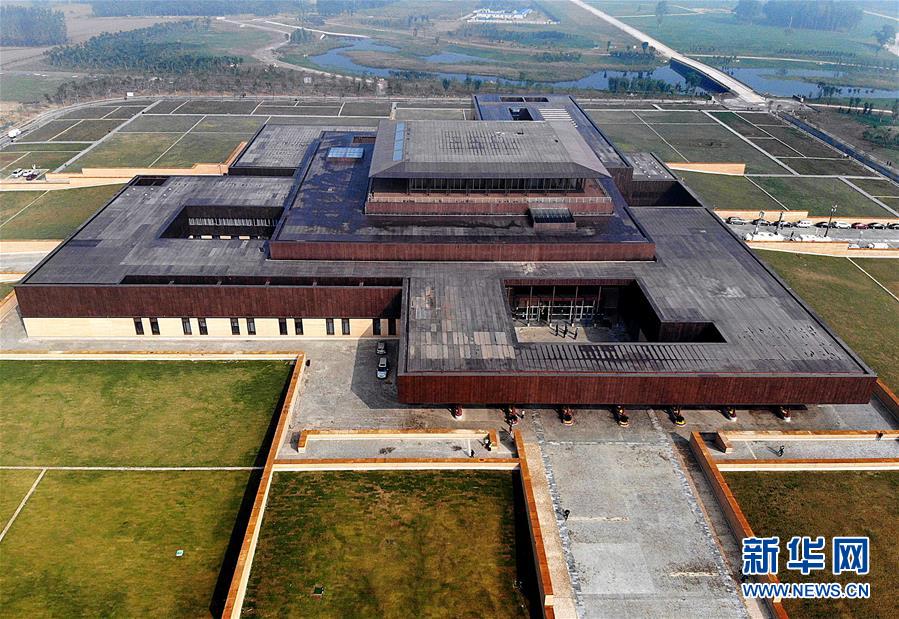 這是二里頭夏都遺址博物館(2019年10月19日攝,無(wú)人機(jī)照片)。新華社記者李安攝