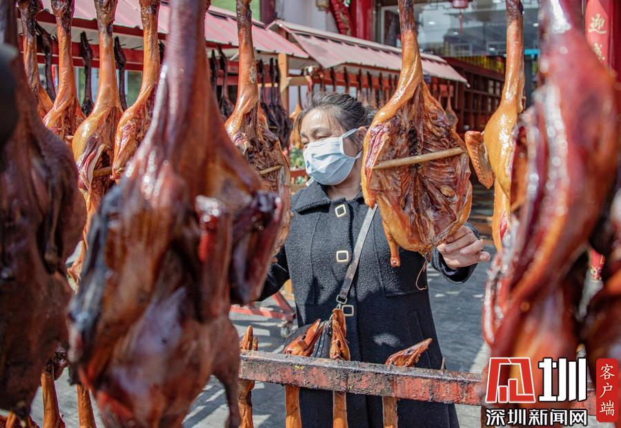 2020年2月28日,走進(jìn)四川省成都市彭州市九尺鎮(zhèn),拍攝的傳統(tǒng)名吃—九尺板鴨圖片。早在明朝,九尺板鴨已頗有名氣,是當(dāng)?shù)卮脱缳e的必備菜式。因其主產(chǎn)地在彭州市九尺鎮(zhèn)而得名。