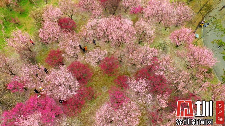 江蘇省揚(yáng)州市蜀岡西峰生態(tài)公園內(nèi)梅花競(jìng)相綻放,五顏六色的梅花樹為古城大地披上七彩春裝,美不勝收。