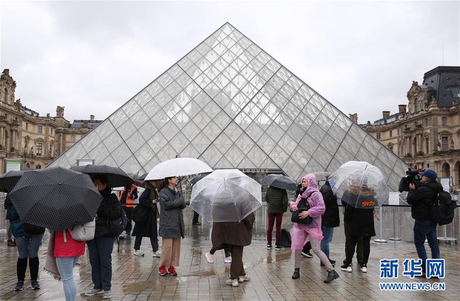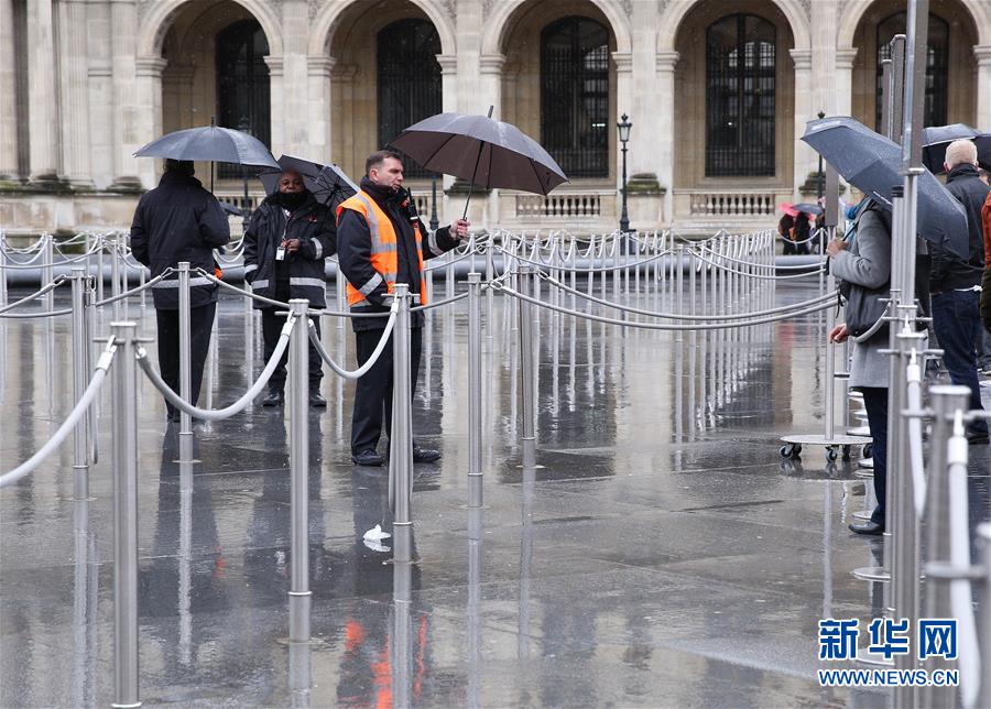 3月2日,在法國巴黎,人們在盧浮宮外了解開館信息。新華社記者 高靜 攝