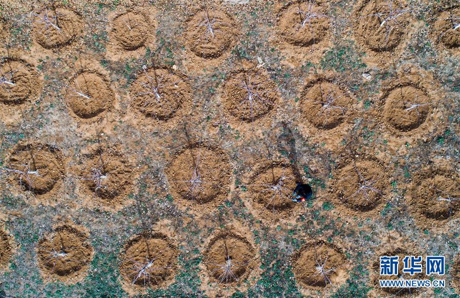 3月4日,武安市馬家莊鄉(xiāng)北果村的村民在修剪果樹(無人機照片)。新華社記者王曉攝