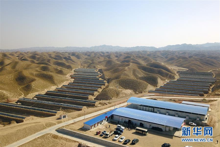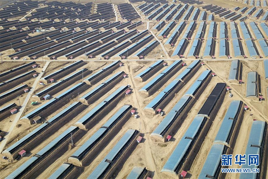 這是3月4日在靖遠(yuǎn)縣石門鄉(xiāng)路莊村易地扶貧搬遷搬入地——三灘鎮(zhèn)銀灘村拍攝的香菇大棚(無(wú)人機(jī)照片)。新華社記者 范培珅 攝