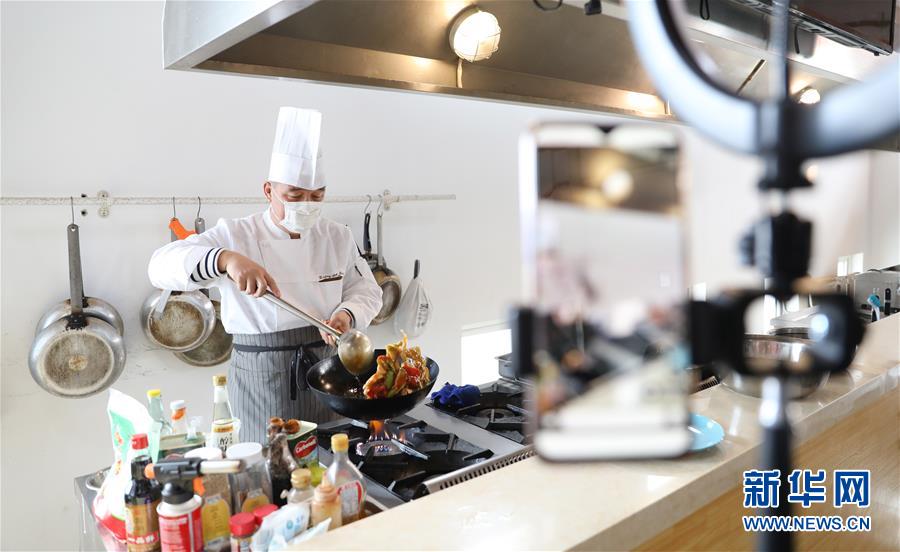 3月4日,職教城內(nèi)的鞍山市現(xiàn)代服務(wù)學(xué)校的李崇老師為學(xué)生進行遼菜烹飪實訓(xùn)網(wǎng)絡(luò)授課。遼寧省鞍山市職教城內(nèi)的各類職業(yè)教育學(xué)校從3月2日恢復(fù)網(wǎng)絡(luò)授課以來,教師們設(shè)置了豐富多彩的課程,提高1萬余名學(xué)生線上學(xué)習(xí)的積極性。新華社記者 姚劍鋒 攝
