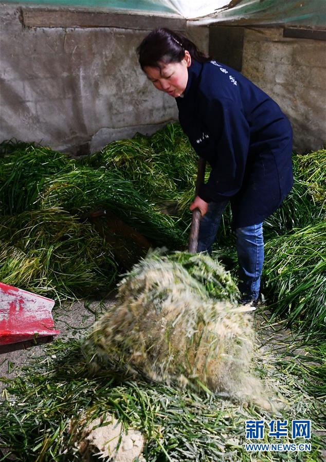 在貴州省銅仁市德江縣平原鎮(zhèn)坳田村,養(yǎng)殖戶在坳田畜牧養(yǎng)殖農民專業(yè)合作社準備牛飼料(2月29日攝)。新華社記者 楊文斌 攝