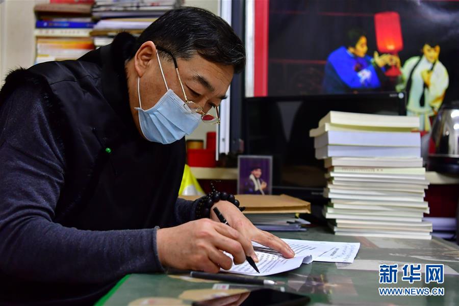 武凌云在太原市晉劇藝術(shù)研究院的辦公室修改劇本(3月4日攝)。 新華社記者 曹陽 攝