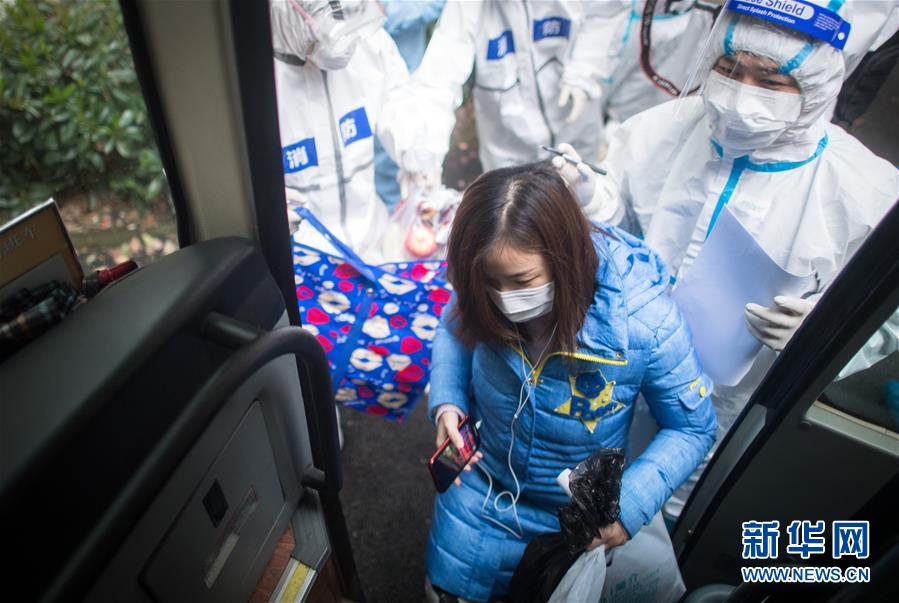 3月12日,黎婧(前)在志愿者的陪護(hù)下登上大巴。 3月12日,插畫師黎婧和84位病友離開自己居住的武漢軟件工程職業(yè)學(xué)院康復(fù)驛站,回到自己家中。他們都是治愈出院的新冠病毒肺炎患者,已經(jīng)在武漢軟件工程職業(yè)學(xué)院康復(fù)驛站進(jìn)行了14天醫(yī)學(xué)觀察,達(dá)到醫(yī)學(xué)標(biāo)準(zhǔn),成功解除隔離。他們由專車運送至所屬社區(qū)附近的集散點后,在社區(qū)工作人員的陪同下回家。 新華社記者 肖藝九 攝