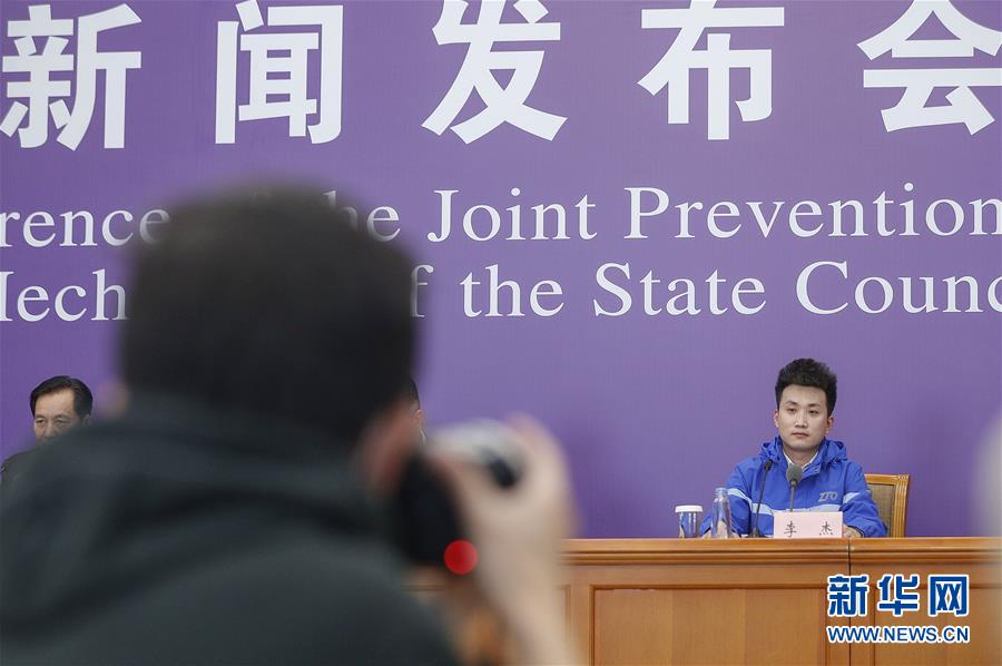 3月9日,中通快遞北京廠洼路網(wǎng)點(diǎn)快遞員李杰在北京出席國務(wù)院聯(lián)防聯(lián)控機(jī)制新聞發(fā)布會(huì)。