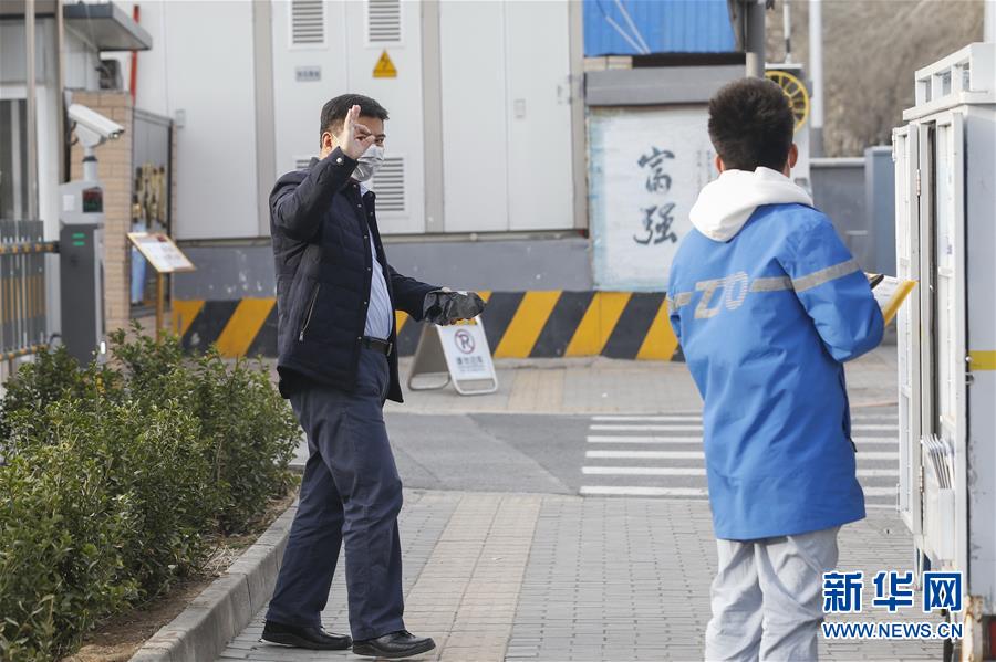 3月12日,李杰在中通快遞北京廠洼路網(wǎng)點(diǎn)上崗前檢測體溫。新華社記者張玉薇攝