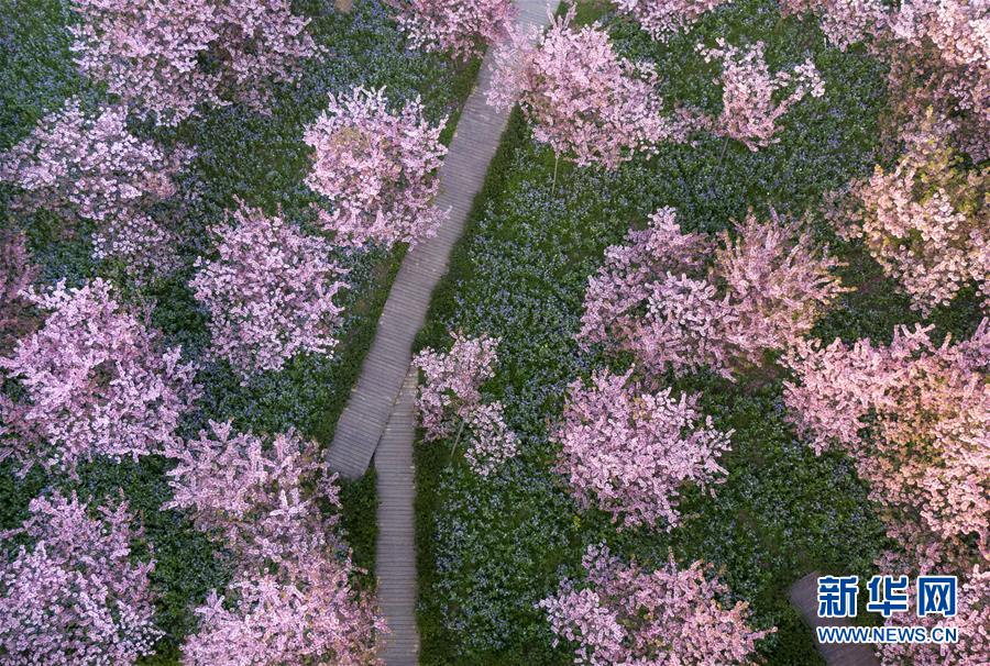 這是3月14日拍攝的武漢東湖磨山櫻園景色(無(wú)人機(jī)照片)。近日氣溫漸升,武漢東湖磨山櫻園里的櫻花漸次盛開,帶來(lái)春天的氣息。新華社記者熊琦攝