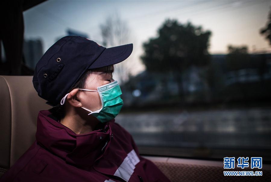3月17日,陜西國(guó)家緊急醫(yī)學(xué)救援隊(duì)隊(duì)員在回程的車上拍攝武漢的日出。新華社記者肖藝九攝
