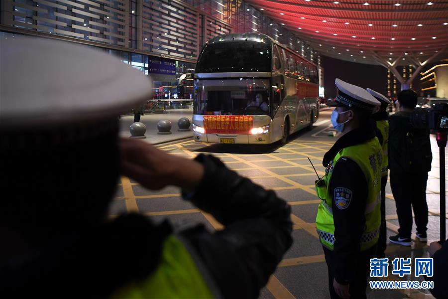 3月17日,抵達湖南長沙南站的醫(yī)療隊隊員乘坐大巴離開。新華社記者薛宇舸攝