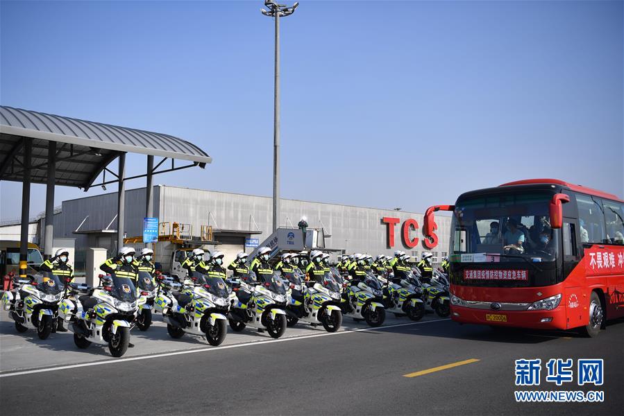 3月17日,醫(yī)療隊隊員乘坐大巴車離開天津濱海國際機(jī)場。新華社記者李然攝