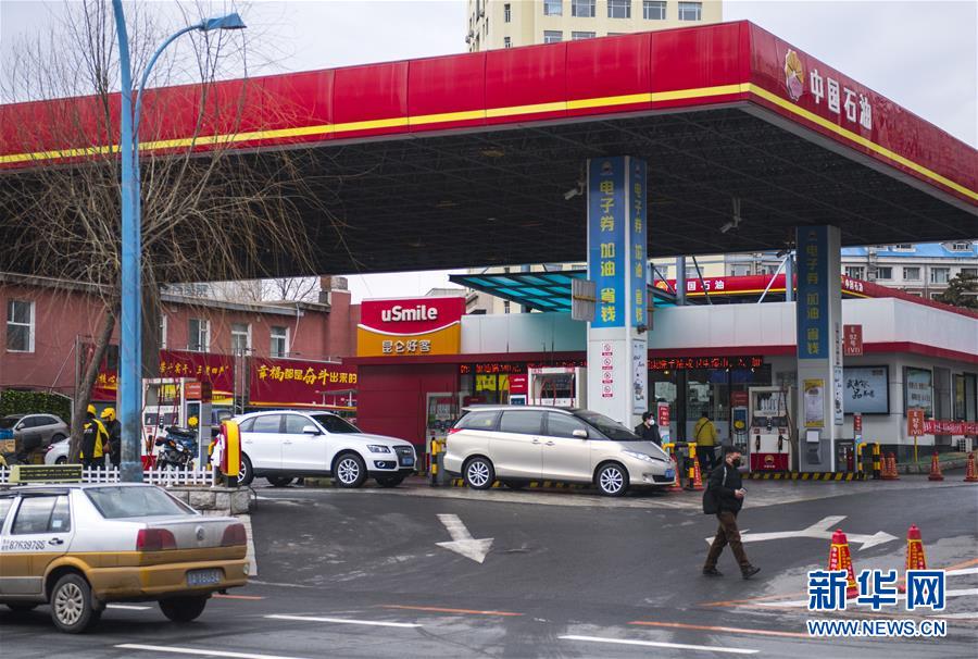 3月17日,車輛在吉林省長(zhǎng)春市一處加油站加油。 新華社記者 許暢 攝