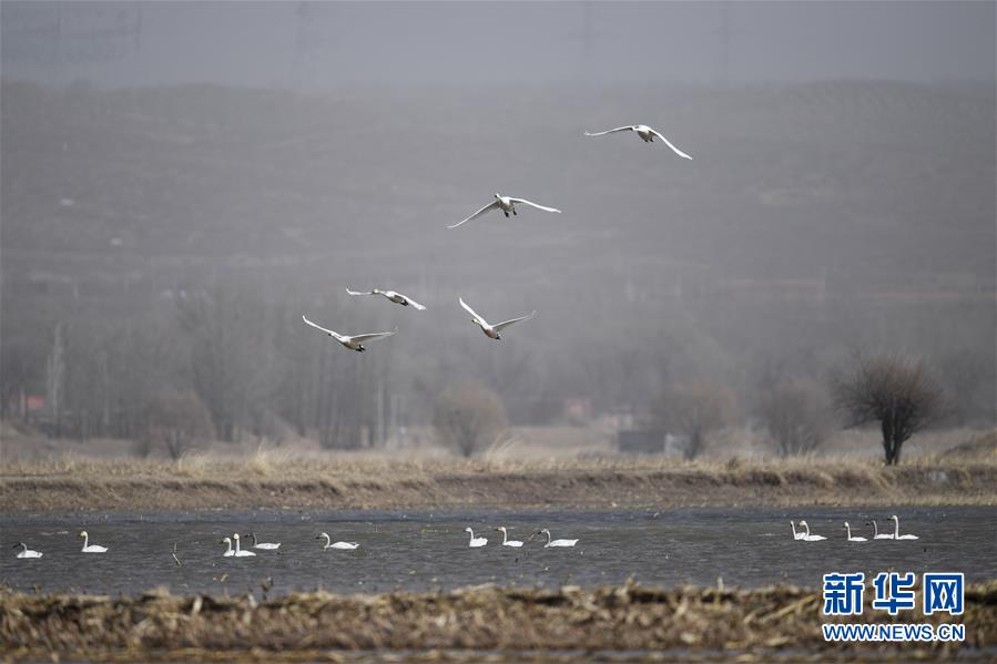 這是3月18日在準(zhǔn)格爾旗大路鎮(zhèn)的黃河淺灘上拍攝的候鳥(niǎo)。 新華社記者 于嘉 攝