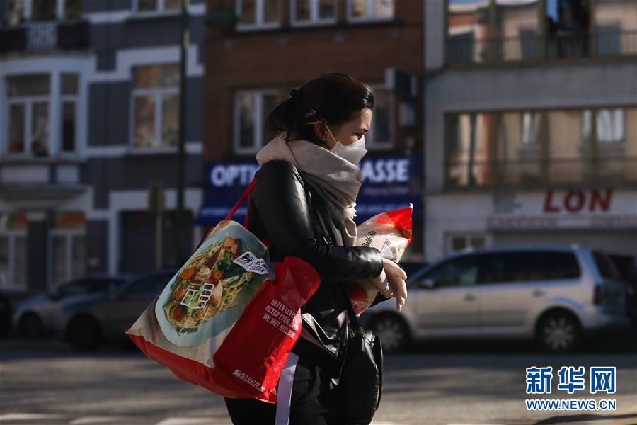 3月18日,在比利時(shí)布魯塞爾,一名女子購(gòu)物后走在街道上。 新華社記者 鄭煥松 攝