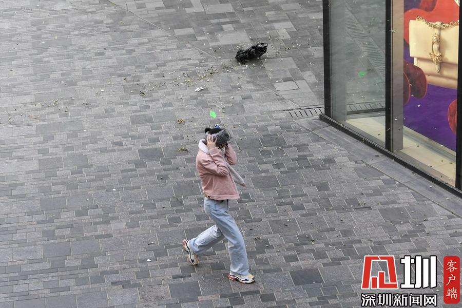 北京八九級(jí)大風(fēng)進(jìn)城,路人頭發(fā)被吹亂。