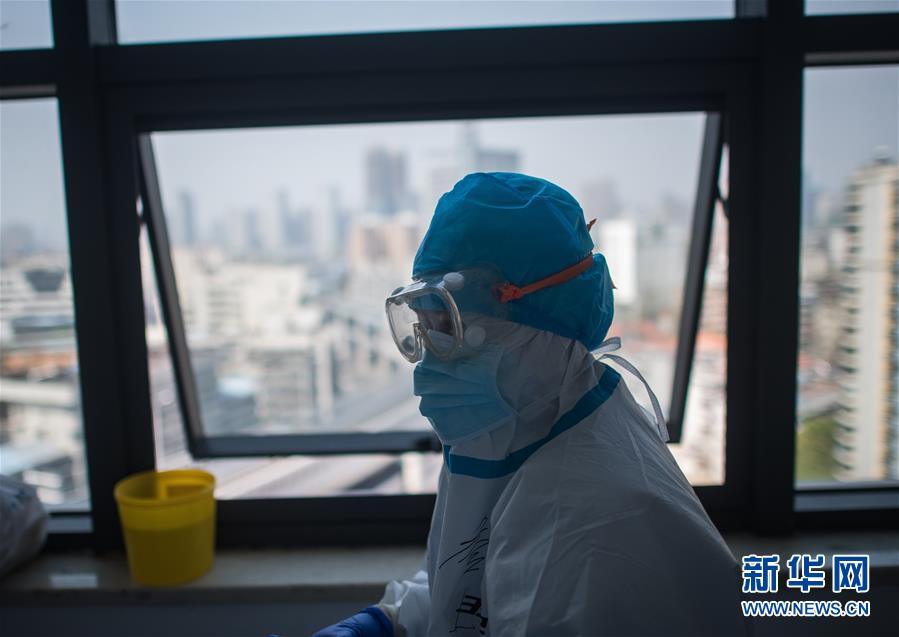 3月19日,在武漢市肺科醫(yī)院隔離病房,醫(yī)護(hù)人員在窗邊小憩。  新華社記者 肖藝九 攝