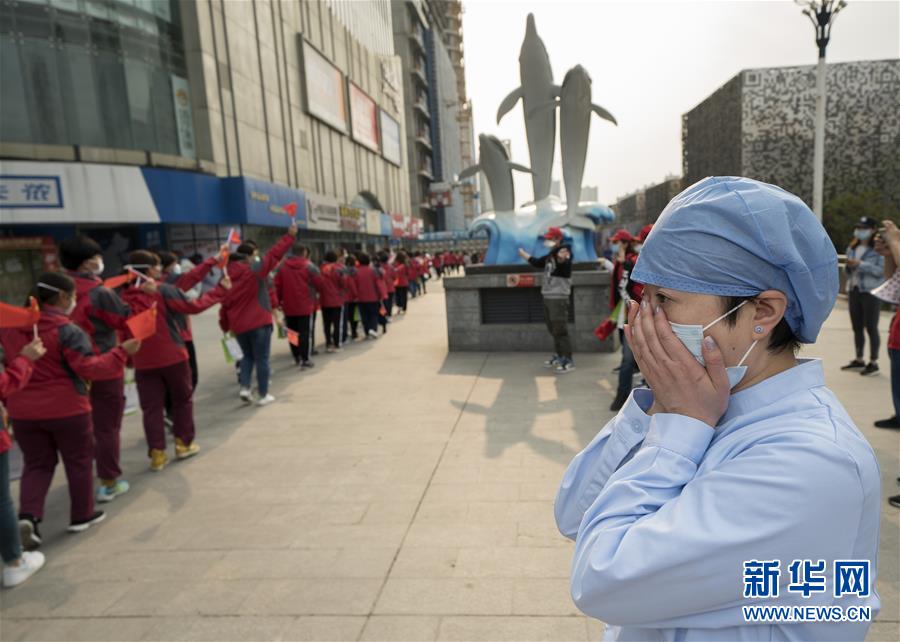3月21日,武漢市第一醫(yī)院的護(hù)士長杜沛在送別天津市醫(yī)療隊(duì)隊(duì)員時掩面而泣。杜沛是負(fù)責(zé)與天津市醫(yī)療隊(duì)對接的護(hù)士長。