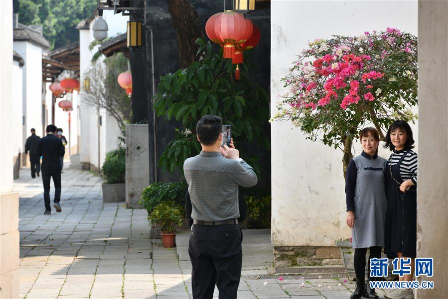 3月22日,在福州三坊七巷歷史文化街區(qū)內(nèi),游客在一株盛開的三角梅前拍照留念。近日,福建省福州市烏山、三坊七巷等歷史文化街區(qū)內(nèi)草木吐綠,鮮花盛開,掩映著一座座傳統(tǒng)古厝,更顯濃濃春意。新華社記者姜克紅攝