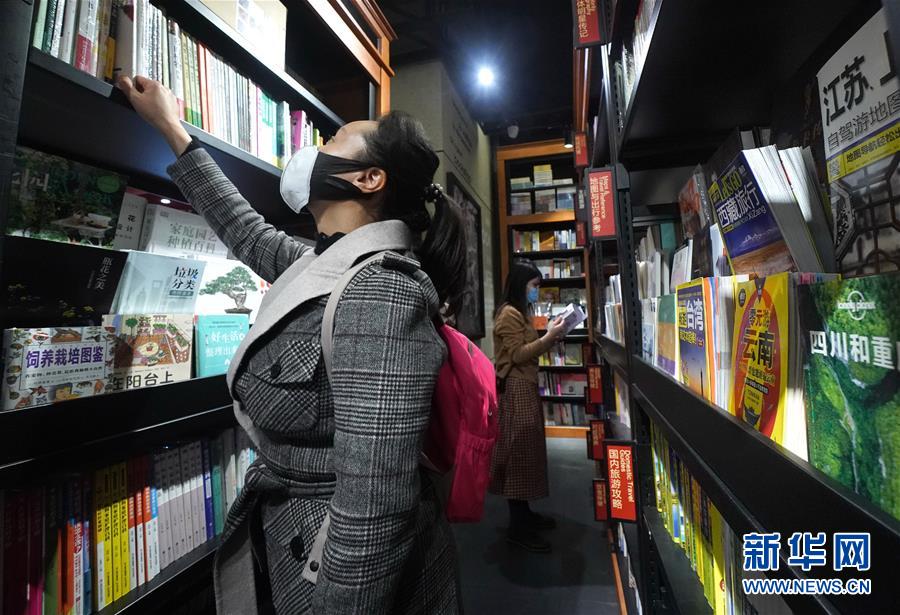 3月22日,顧客在上海市中山北路上的一家書店內(nèi)閱讀選購。近期,上海市的一些實體書店陸續(xù)恢復開放。為做好疫情防控工作,目前進入書店需要測量體溫,書店也縮短了運營時間。新華社記者陳飛攝