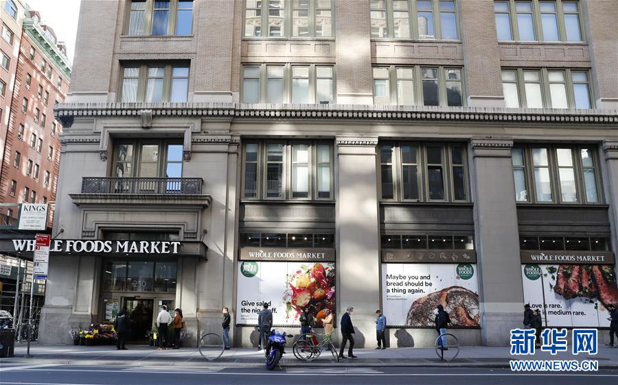 3月21日,在美國紐約,人們排隊時保持距離,準(zhǔn)備進(jìn)入一家超市購物。美國紐約州、伊利諾伊州、康涅狄格州20日發(fā)布針對本州居民的“居家令”,以遏制新冠病毒傳播。這些“居家令”涵蓋紐約、洛杉磯、芝加哥等大城市,影響數(shù)千萬人。白宮20日發(fā)表聲明說,總統(tǒng)特朗普已宣布紐約州出現(xiàn)“重大災(zāi)難”,命令聯(lián)邦政府支援該州抗擊新冠肺炎疫情。新華社記者王迎攝