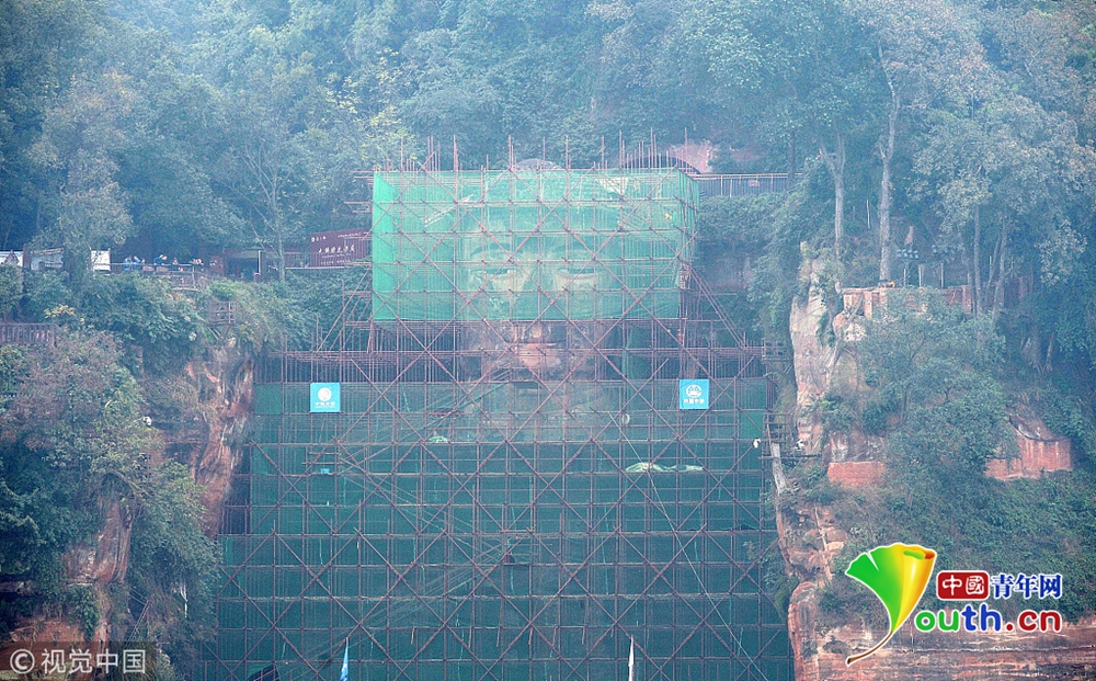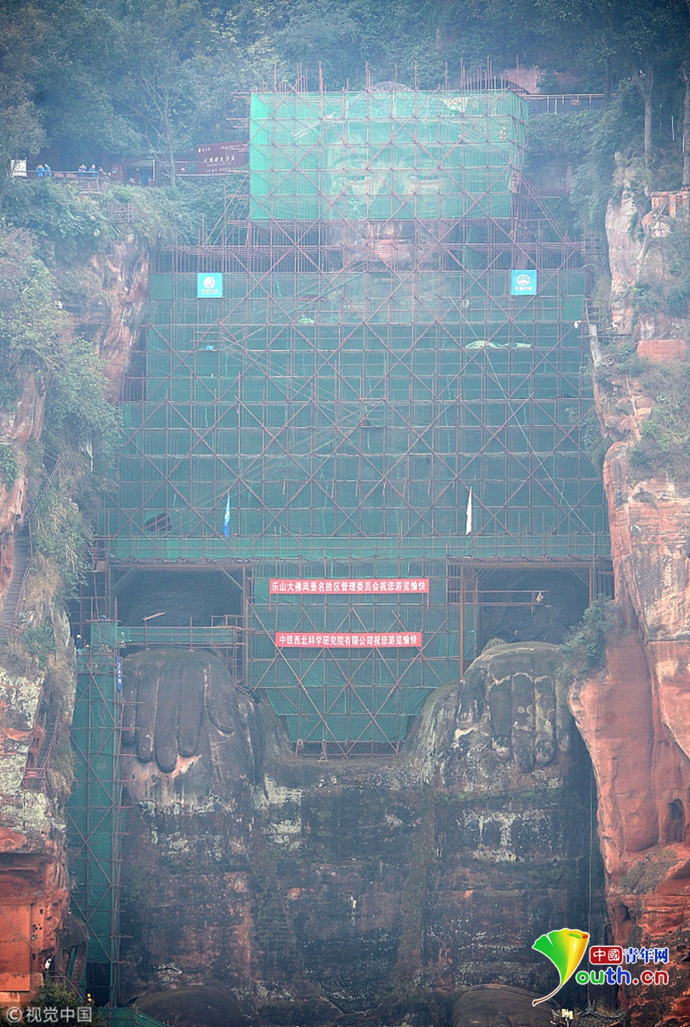 樂(lè)山大佛本體已全遮蔽胸腹開(kāi)裂病害原因基本查明