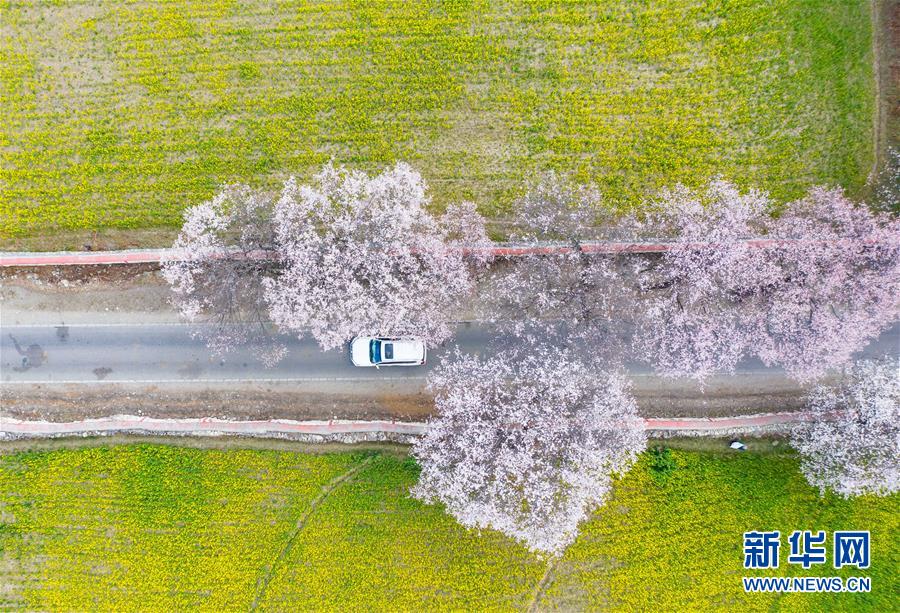 3月26日,西藏林芝境內盛開的桃花(無人機照片)。新華社記者 孫非 攝