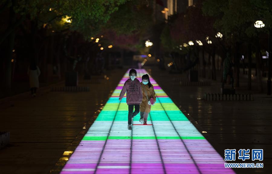 4月1日晚,兩位小朋友在江灘公園玩耍。新華社記者費茂華攝